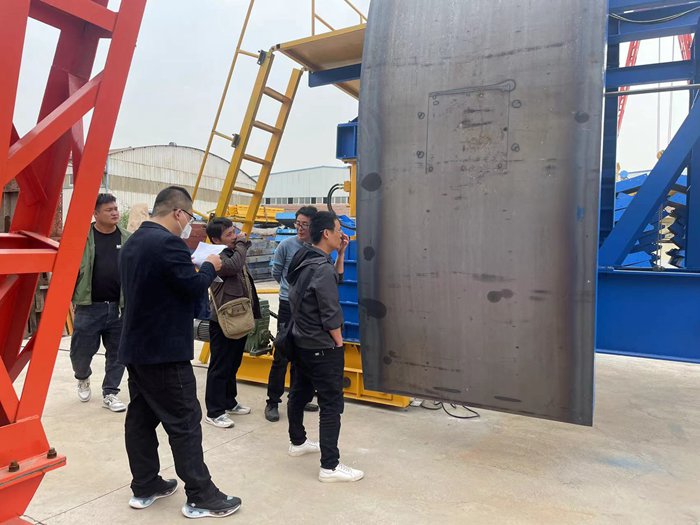 2023年4月13日,中鐵六局集團有限公司沈陽地鐵一號線1標項目經理部檢查驗收專家組蒞臨我廠,對訂購我廠生產的二襯臺車進行檢查測量驗收。在為期一天的驗收工作中,通過聽取現場匯報,實地測量,調試、繪圖3D模擬,對我廠的二襯臺車進行了細致的檢查驗收。